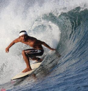 Meet Rifaah, a local legend from Gerupuk, Lombok. Born and raised here, he’s spent over 20 years mastering the waves and is one of the area’s first surf instructors.